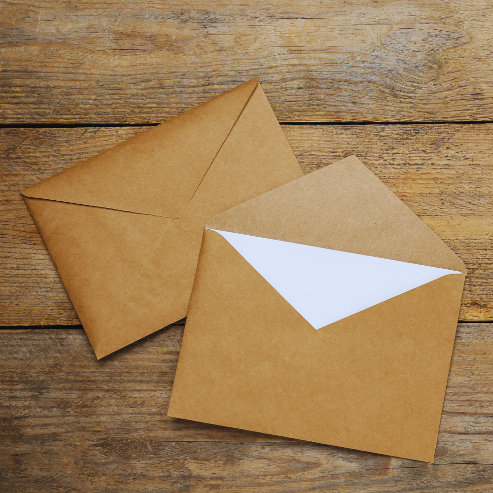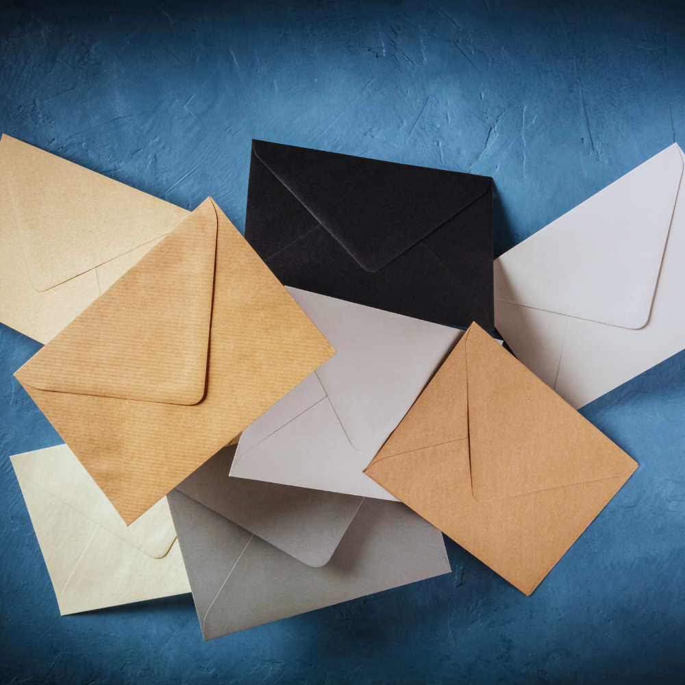 Pentru invitațiile de nuntă, cel mai bine este să alegeți plicuri realizate din hârtie decorativă sau hârtie kraft.